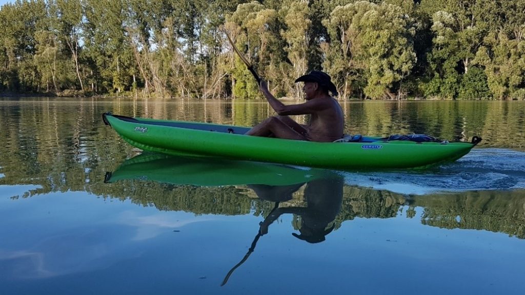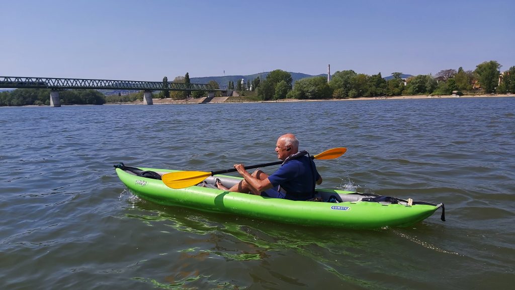 The friend of our Gumotex dealer from Budapest, Kajak.hu, Pupu (*1943) has been an avid outdoor athlete for 67 years. He started as a climber (High Tatras, Alps), followed by marathon and ultra-running, kayaking, canoeing, cycling, also recumbent cycling. He bought his first inflatable kayak, a Barum (old brand name of Gumotex boats) in 1977, and used it on the Hungarian rivers, the Adriatic, and the Mediterranean, off the coast of Algeria until the 1990s. In 1983 Pupu and his wife and daughter paddled the Danube from the Black Forest to Vienna. He also had a Swift kayak in Budapest, for 30 years. He then acquired a Grabner Adventure inflatable canoe in 2002, which was tested in his country and in Poland on the Krutyna and Czarna Hancza rivers as well as in Germany.
