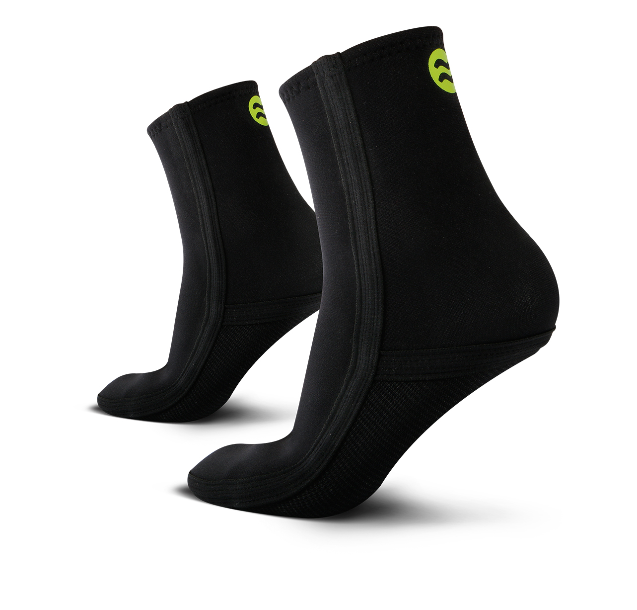 Neoprene socks are made of 3 mm thick neoprene with abrasion resistant material on the outside. They offer heat comfort.