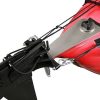 Installation on the boat is simple and fast. It attaches to the stern and the steering lines are routed along the sides and down to the bottom of the kayak where the steering pedal is positioned. The rudder is easy to remove and reinstall.