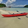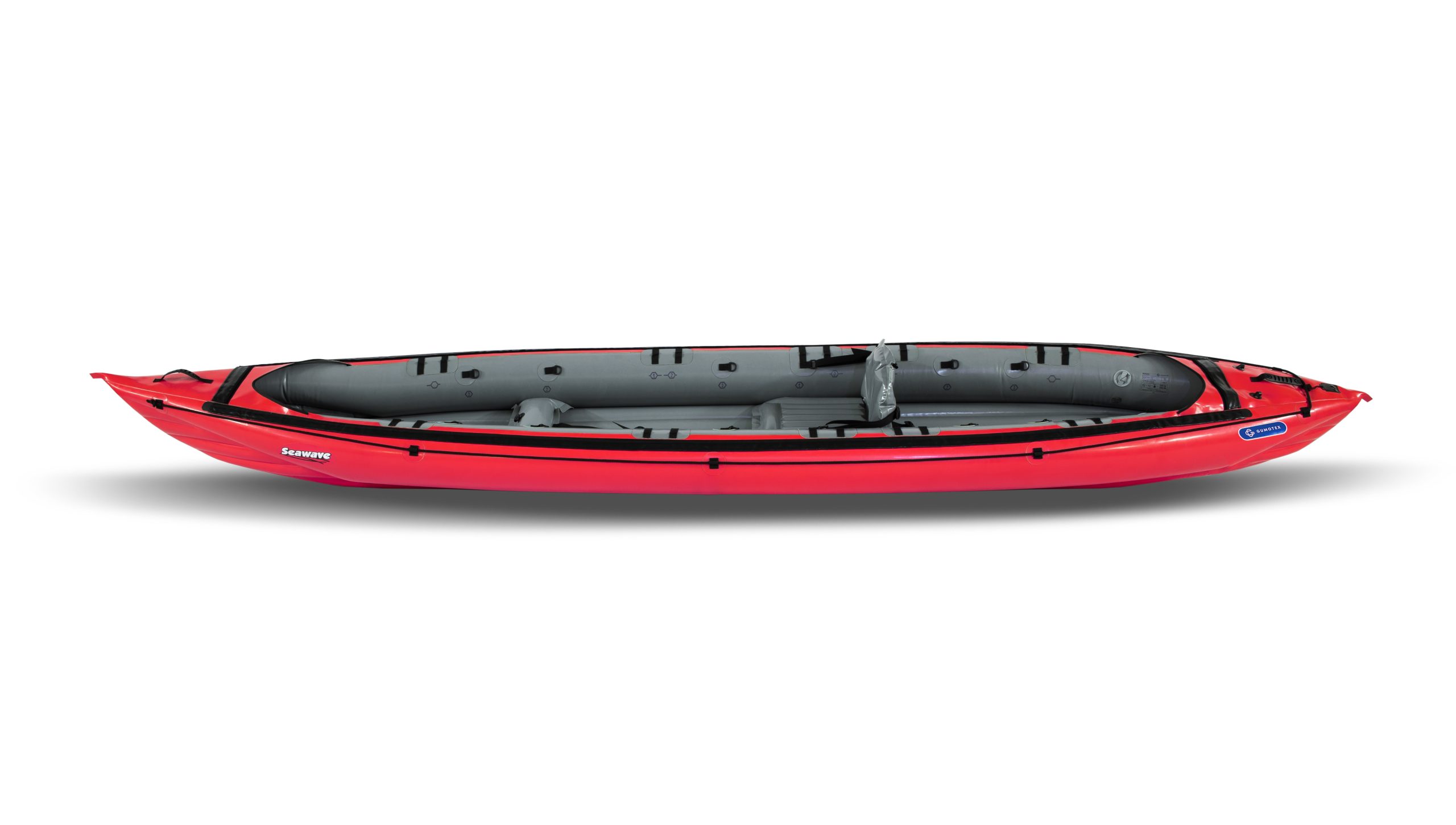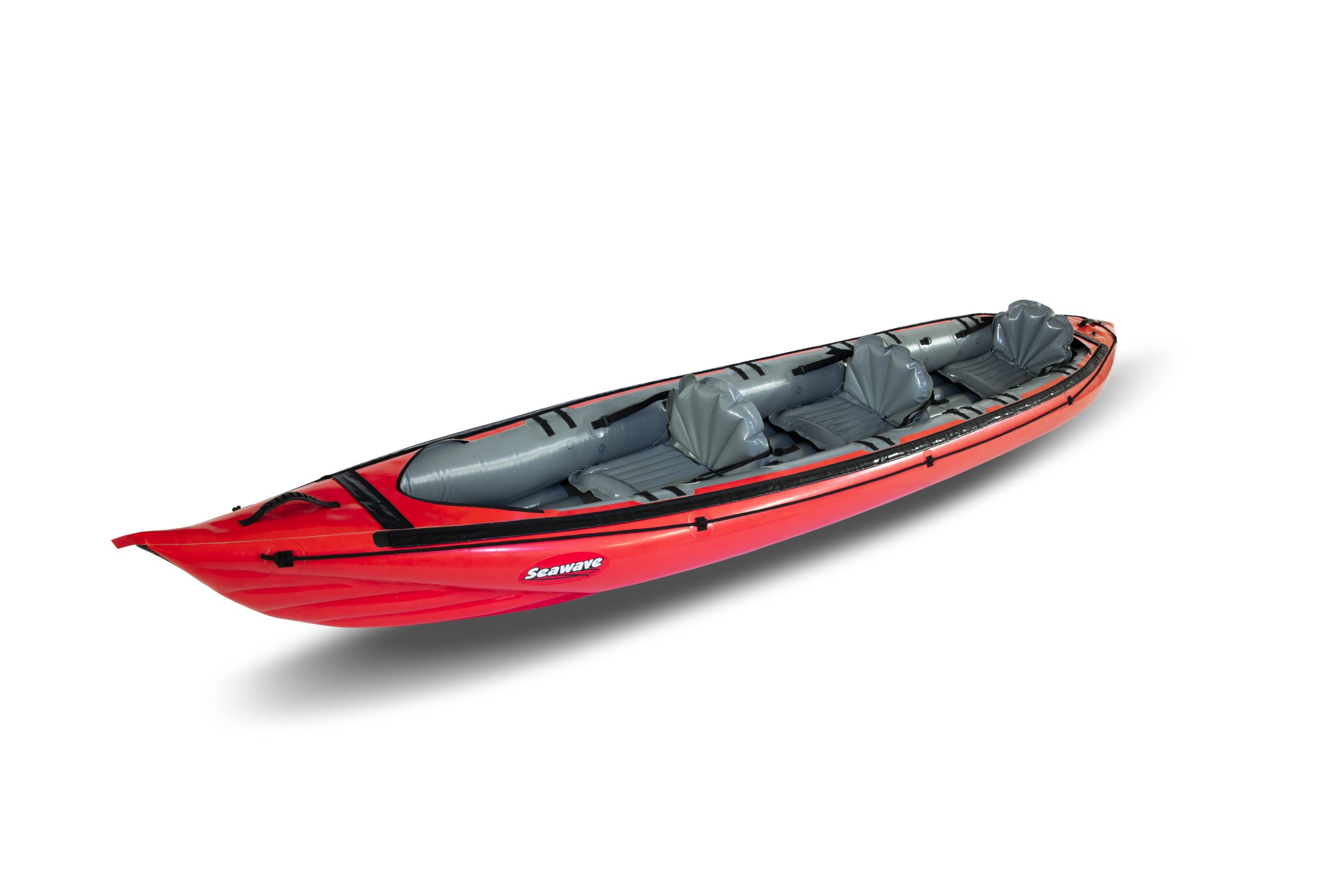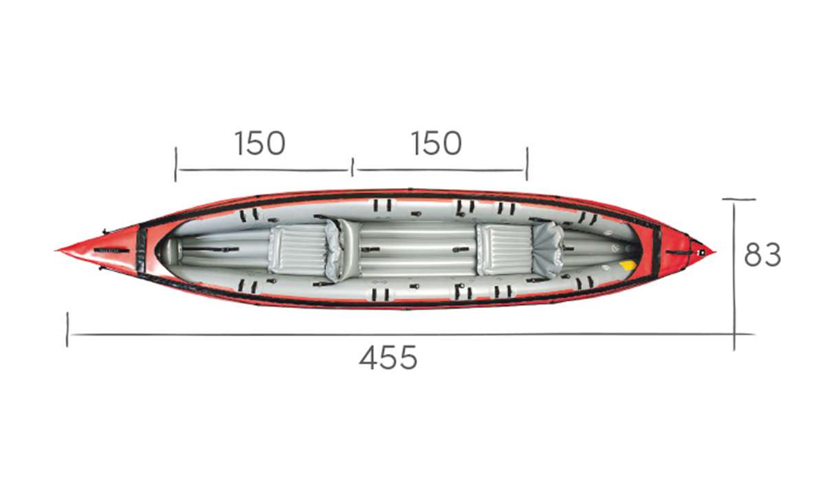 Thanks to its long narrow shape, the SEAWAVE kayak is easy to control and very fast. It can be converted from a three-person version into a two-person or one-person kayak by moving the seats. Installation of an optional deck makes SEAWAVE a great sea kayak convenient for cruising in rough sea conditions, i.e. with swell and waves generated by a force 3 to 6 winds (provided that its paddlers have sufficient experience and technique to do so). Aluminium reinforcements support the deck and stiffen the kayak’s hull. The floor features a pronounced keel for handling in the wind and better tracking. SEAWAVE is an excellent verzatile touring kayak suitable also for seakayaking.