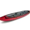 With the Seawave, your deflated bottom will sink only 10 to 15 cm, depending on your weight… A position in which you can still paddle relatively well, or even effectively at normal height, if you fold the inflatable backrest over the seat and sit on it. Explanation: the four metal hoops/Arcs that hold the deck in place are extremely tight and keep the boat “under tension”, so as to stretch the deck as far as possible. This has the effect of forcing the side flanges outwards, preventing the bottom from digging in too much, and thus allowing you to sit with enough height to paddle!
