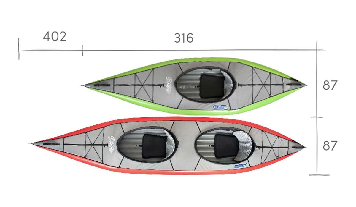 SWING 1 is a sit-in inflatable kayak great for relaxing trips on sheltered waters, harbours, lakes and rivers up to Gr. 2 white water. The kayak is supplied with two aluminium reinforcements for improved rigidity of the hull, maneuverability and stability. The reinforcements also shape the deck of the kayak. Thanks to its low weight the kayak is perfect for trips with frequent portages. The enclosed deck prevents water getting in. The kayak is available in a single and a double version.