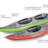 SWING 1 is a sit-in inflatable kayak great for relaxing trips on sheltered waters, harbours, lakes and rivers up to Gr. 2 white water. The kayak is supplied with two aluminium reinforcements for improved rigidity of the hull, maneuverability and stability. The reinforcements also shape the deck of the kayak. Thanks to its low weight the kayak is perfect for trips with frequent portages. The enclosed deck prevents water getting in. The kayak is available in a single and a double version.