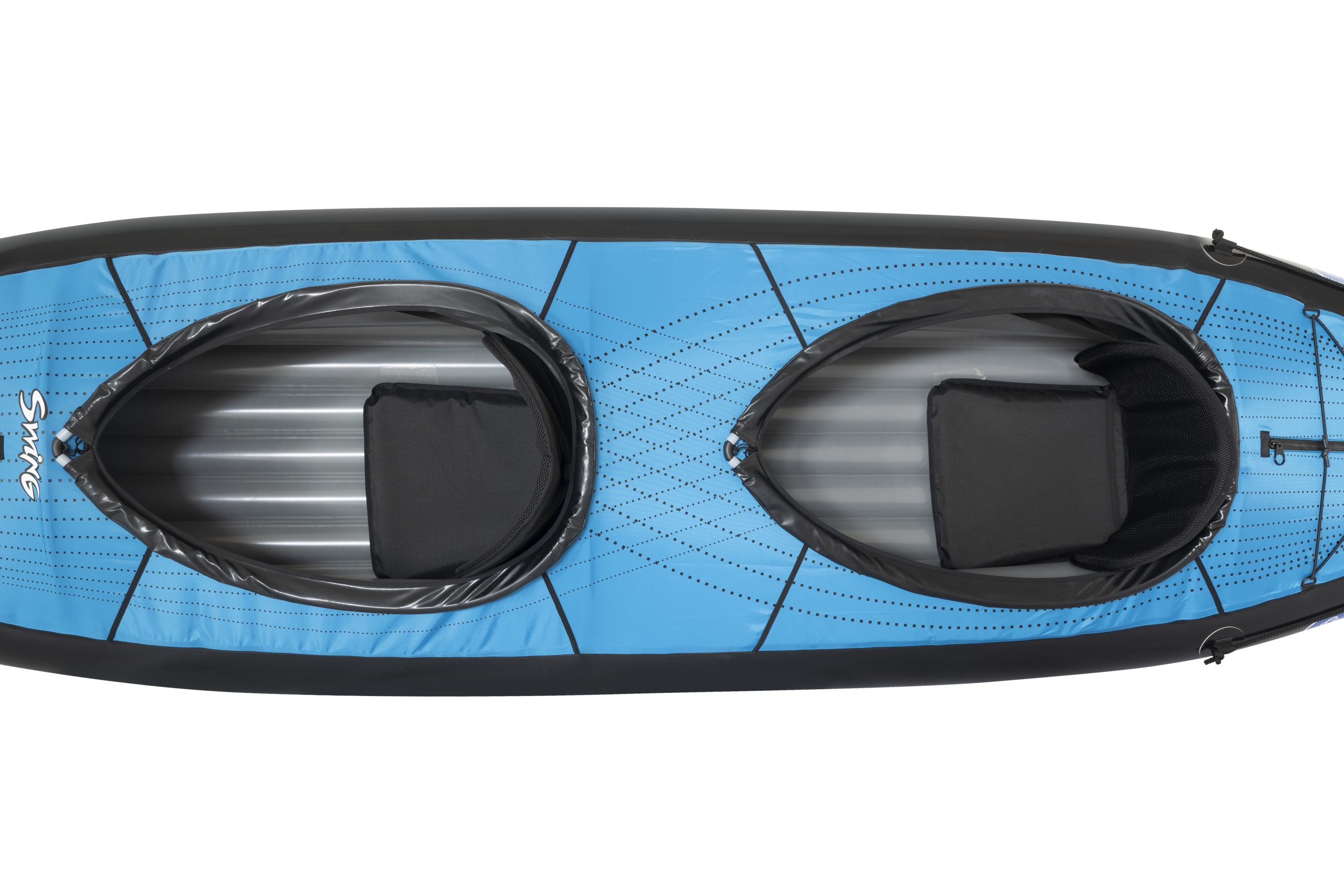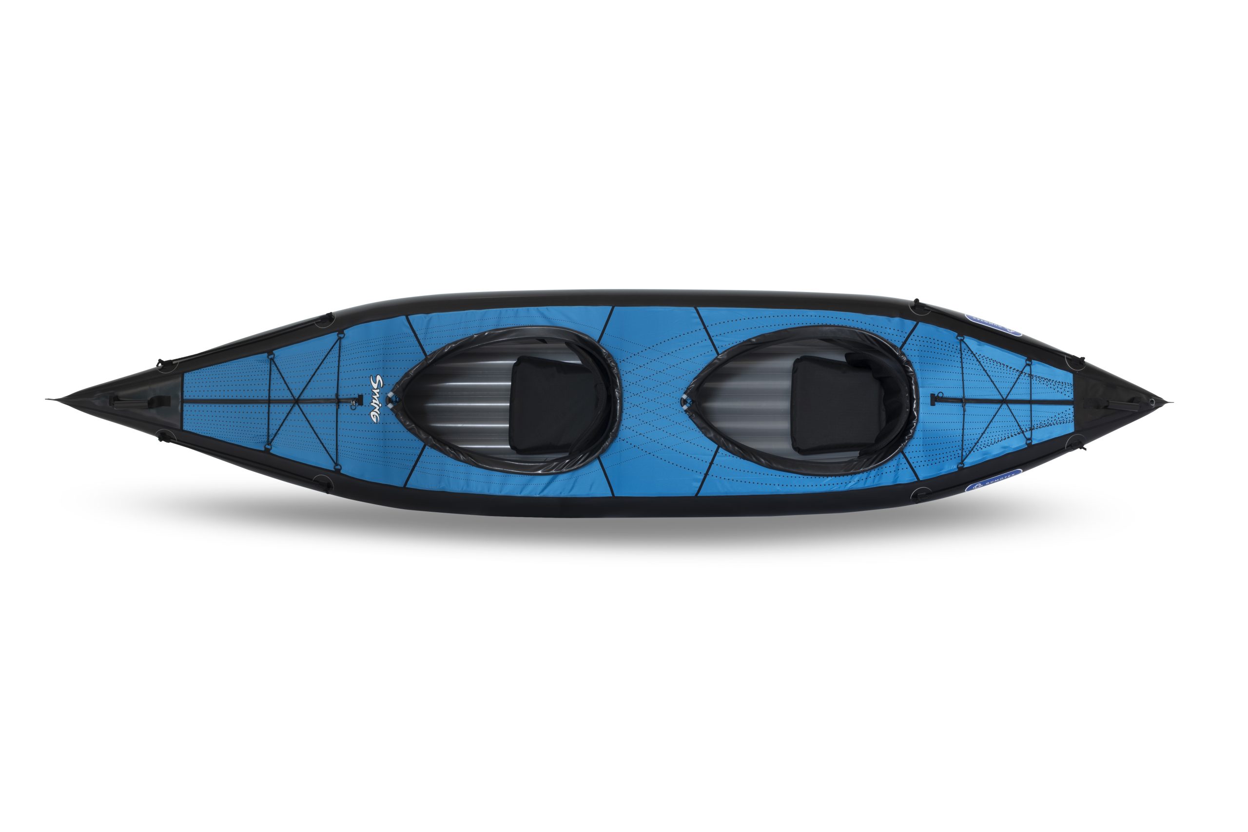 SWING 2 is a sit-in inflatable kayak great for relaxing trips on sheltered waters, harbours, lakes and rivers up to Gr. 2 white water. The kayak is supplied with three aluminium reinforcements for improved rigidity of the hull, maneuverability and stability. The reinforcements also shape the deck of the kayak. Thanks to its low weight the kayak is perfect for trips with frequent portages. The enclosed deck prevents water getting in. The kayak is available in a single and a double version.