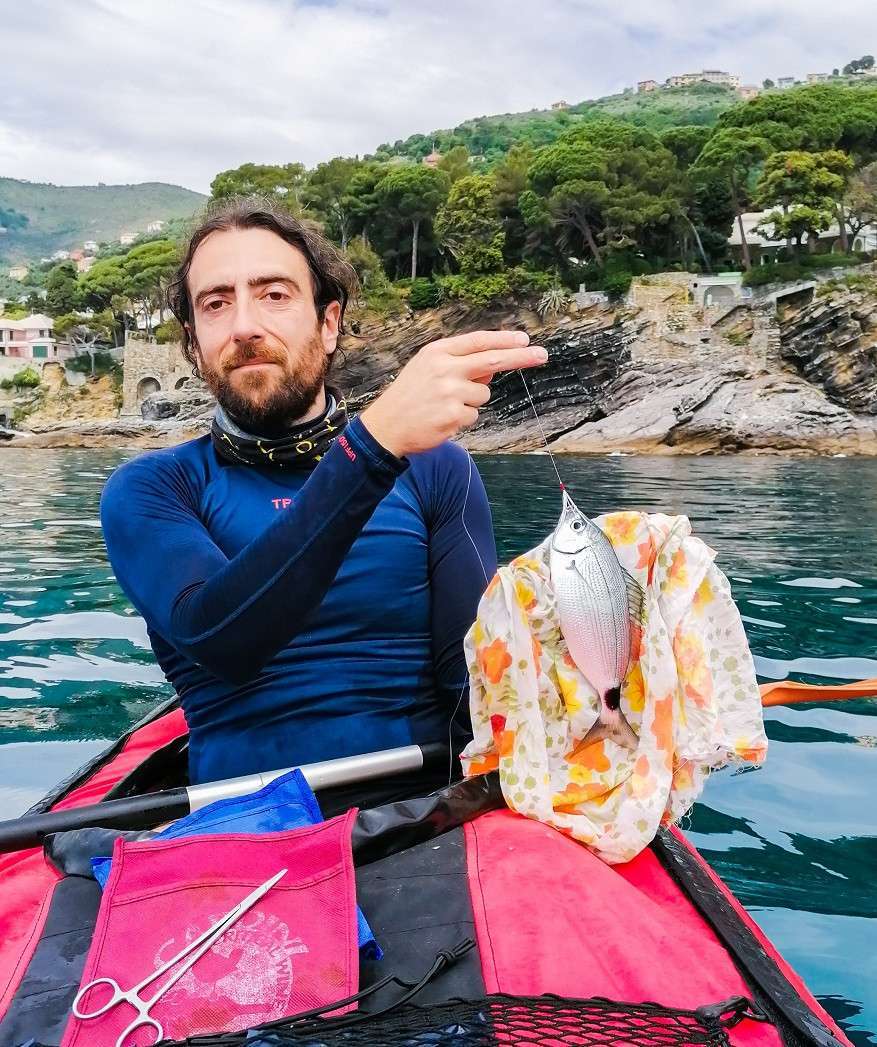 During the navigation we have also dusted off a practice that proves to be very useful, during the excursions of several days, to ensure an excellent dinner: the towing. The kayak, thanks to its moderate speed and the total absence of noises that frighten the fish, proves to be an exceptional means of fishing and allows, even if only with a hand line and an artificial bait, to make good catches.