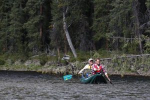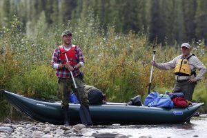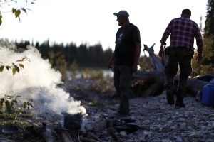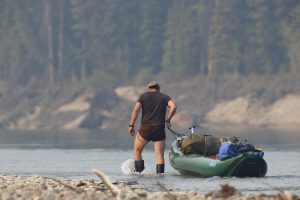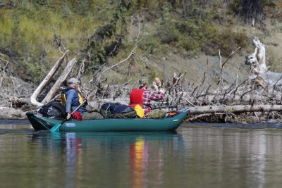 We didn’t even register the mouth of Caribou Creek into the Liard River at first, as we were fully occupied with our orientation and navigating the labyrinth of various obstacles and fast side currents that rolled in from everywhere. When the currents merged into one, we knew we were finally sailing the Liard. It flows roughly fifty kilometers in a north easterly direction until it hits the wall of the Saint Cyr mountain range and has no choice but to turn southeast. The beautifully clear current of the river still flows at a speed of six to seven kilometers per hour. The weather was kind to us, and we sailed through a beautiful landscape along and among the nearby slopes of mountains of unknown names, the height of which I would estimate to be eighteen hundred meters. It was a relaxing ride and we enjoyed both the beautiful scenery and the clear, turquoise water of the river and the fish swimming in it. Not far before our eyes, a huge elk crossed to the other side of a relatively shallow river, and when the fountains of water hit the surface and the elk disappeared into the forest, there was a calm and it seemed to us that it was only a mirage.