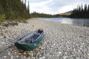 Our group of three, the two Peters and I, spent eighteen beautiful days on the upper Liard. In mid-August, we were flown from Whitehorse by seaplane to the larger of the two Caribou Lakes, about two hundred kilometers away. As soon as we settled down on the shore of the lake, it started to rain. Leaden clouds lay over the lake and it continued to drizzle the next day. We prepared our trekking canoes for the journey, repacked provisions and personal belongings into waterproof barrels and sacks, successfully fished and enjoyed mushroom fritters from the quartzite, of which there were countless in the forest. In the afternoon, the clouds started to break and the sun even smiled at us in the evening. This then accompanied us on our 300-kilometer trek to the Indian village of Upper Liard, where the Alaska Highway crosses the river and thus offers a simple option to end the journey through the Canadian wilderness, for sixteen whole days.