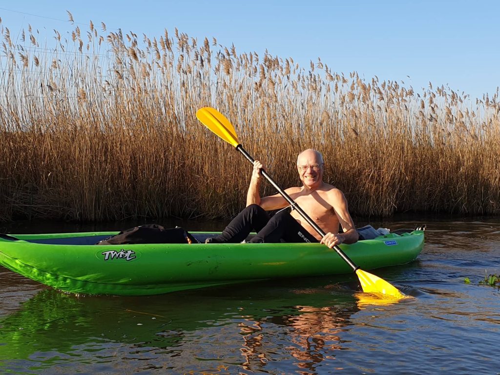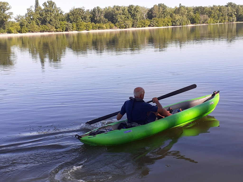 The friend of our Gumotex dealer from Budapest, Kajak.hu, Pupu (*1943) has been an avid outdoor athlete for 67 years. He started as a climber (High Tatras, Alps), followed by marathon and ultra-running, kayaking, canoeing, cycling, also recumbent cycling. He bought his first inflatable kayak, a Barum (old brand name of Gumotex boats) in 1977, and used it on the Hungarian rivers, the Adriatic, and the Mediterranean, off the coast of Algeria until the 1990s. In 1983 Pupu and his wife and daughter paddled the Danube from the Black Forest to Vienna. He also had a Swift kayak in Budapest, for 30 years. He then acquired a Grabner Adventure inflatable canoe in 2002, which was tested in his country and in Poland on the Krutyna and Czarna Hancza rivers as well as in Germany.
