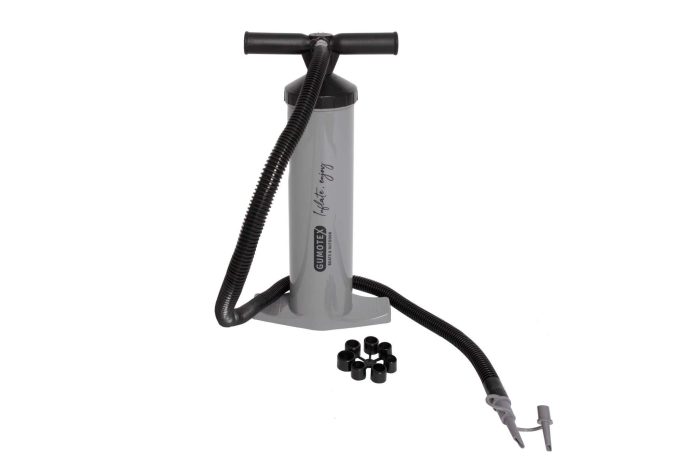Hand pump GTX with a volume of 67,6/135,3 oz serves for inflating all types of GUMOTEX boats. Reduction for Push-Push valve is included.