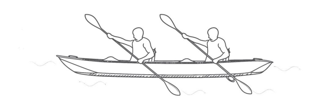 In two-seater version for performance: The two crew members are far apart, enabling them not only to use long Sea-kayak or Marathon paddles, but also to paddle with high amplitude propulsion, all without getting in each other’s way: no possible clashes between their blades.