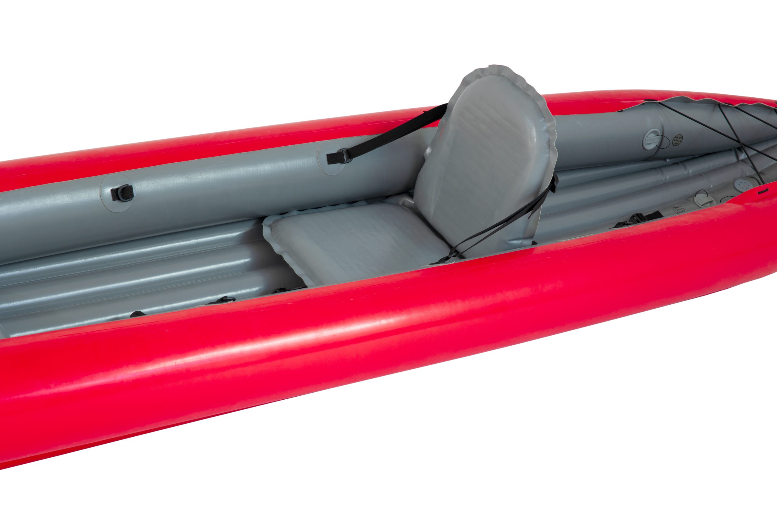 Comfortable seat with Dropstitch technology, high backrest and push-push valve.
